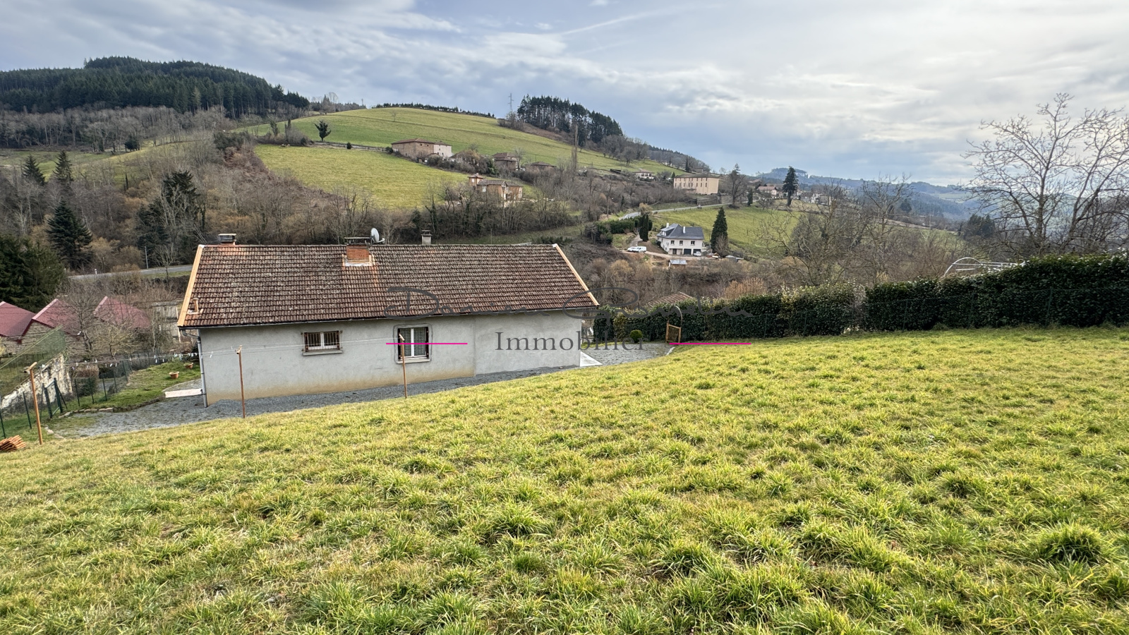 Villa individuelle construite sur une jolie parcelle de 1503 m² avec vue dégagée sur la campagne comprenant hall d'entrée, cuisine, salon et salle à manger, 4 chambres, salle d'eau et toilettes. Le sous sol complet comprend une cuisine d'été, une pièce de réception avec un poêle à bois, 2 garages pouvant accueillir 4 voitures. Travaux de second oeuvre à prévoir. Exposition sud est, cadre sympathique en campagne, A VOIR !